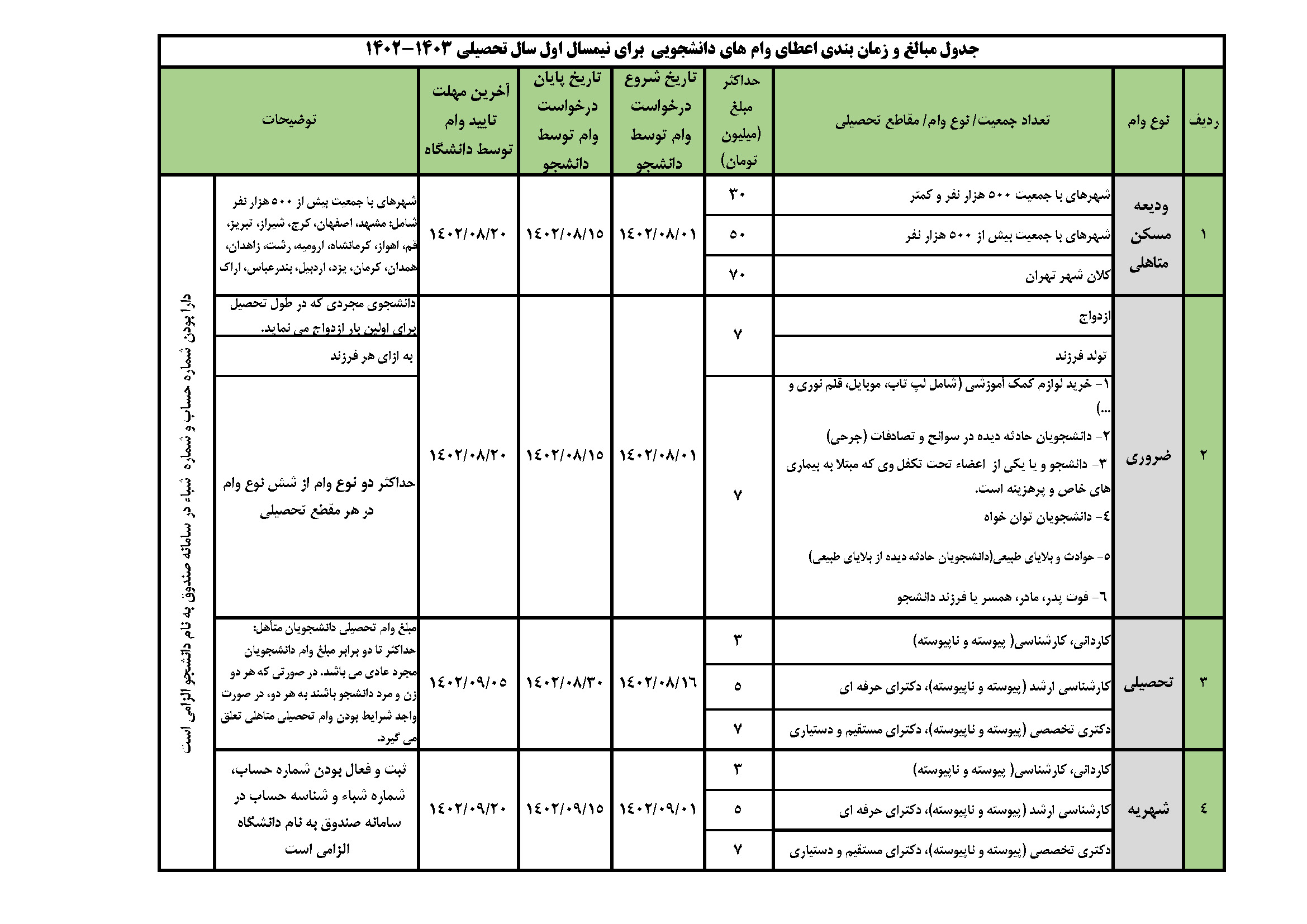 اطلاعیه وام های دانشجویی نیمسال اول 1403-1402