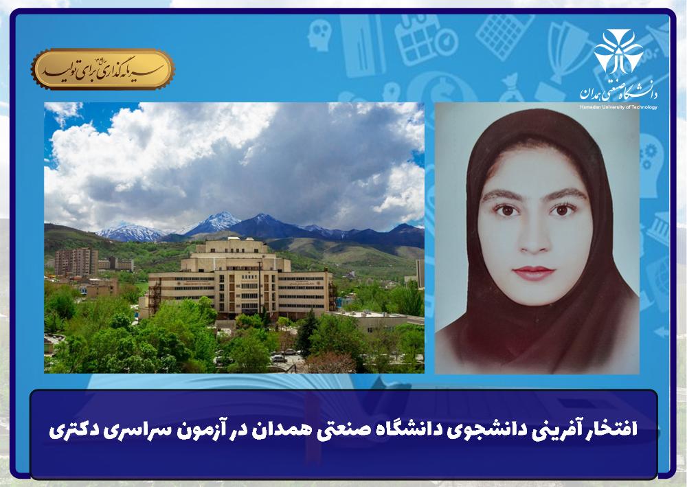 افتخار آفرینی دانشجوی دانشگاه صنعتی همدان در آزمون سراسری دکتری