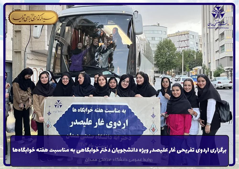 به مناسبت هفته خوابگاهها و با هدف ایجاد فضای نشاطآور و تقویت روحیه جمعی در میان دانشجویان، اردوی تفریحی یکروزه به غار شگفتانگیز علیصدر ویژه دانشجویان دختر خوابگاهی برگزار شد.